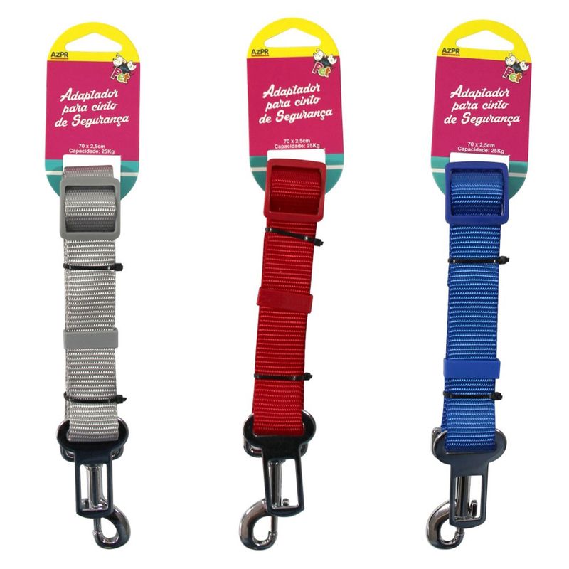 - Indicado para cães; - Adaptador universal; - Pode ser utilizado na maioria dos veículos fabricados a partir de 1990; - Em uma das pontas há um mosquetão metálico, para ser preso a peitoral do pet e na outra ponta há um engate para ser preso ao encaixe do cinto de segurança do veículo; - Não pode ser usado com coleira; - Tem fivela de fácil regulagem, que ajuda a limitar a movimentação do animal no veículo o que além de impedir acidentes; - Evita que o cão arranhe os vidros ou lataria do veículo; - Disponível em 2 tamanhos. Embalagem com 1 Unidade. Cores diversas, o envio será de acordo com a disponibilidade em nosso estoque.