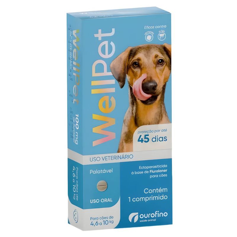 Antipulgas e Carrapatos Wellpet 100 mg é um comprimido palatável desenvolvido para o controle de infestações causadas por ectoparasitas, como Ctenocephalides felis felis (pulga) e Rhipicephalus sanguineus (carrapato), oferecendo até 45 dias de proteção.