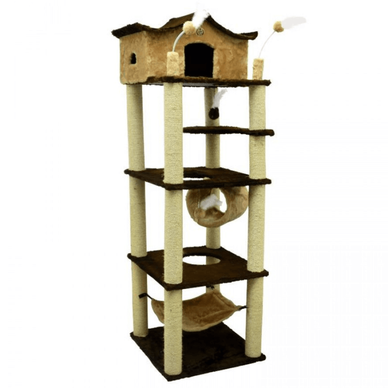 - Múltiplos postes de sisal: Postes distribuídos estrategicamente para atender às diferentes alturas preferidas pelos gatinhos ao arranhar;
