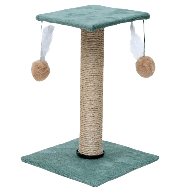 - Poste com revestimento de sisal: O poste central é revestido com sisal de alta qualidade, ideal para o afiar das garras, incentivando o instinto de arranhar de forma saudável e segura;