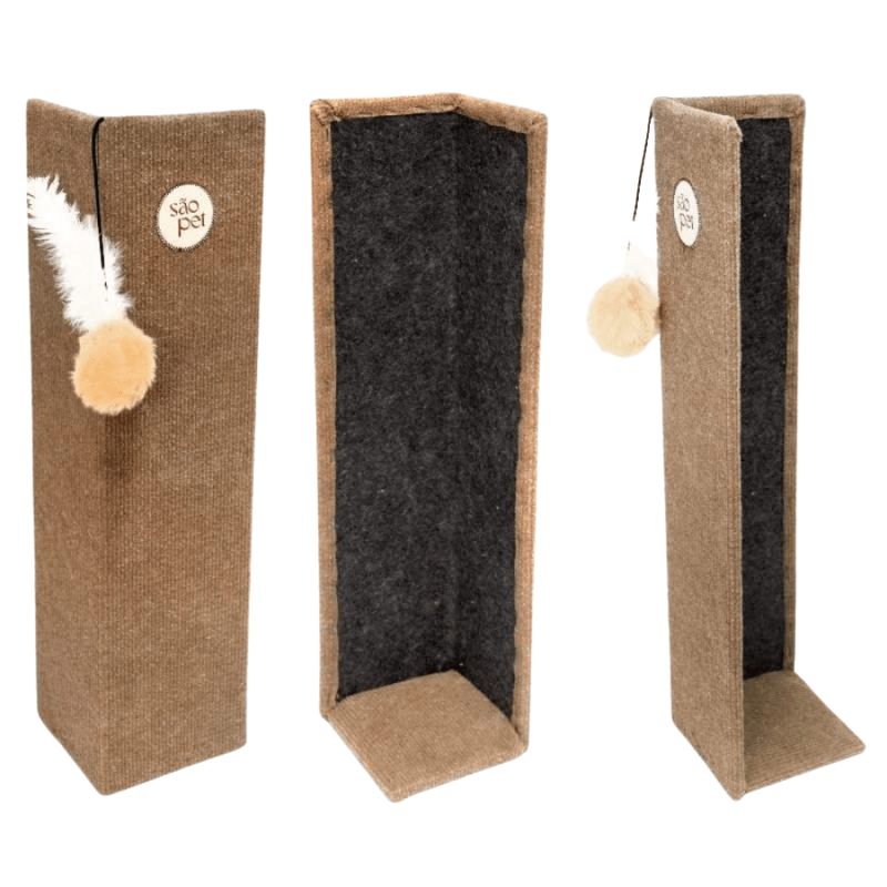 Está na hora de dar um descanso para os seus móveis! O Arranhador Corner Fit da São Pet foi desenvolvido especialmente para proteger os cantos dos móveis, criando um espaço perfeito para o seu gato arranhar, relaxar e se divertir. ** Acompanha apenas 1 unidade do arranhador. Destaques do Arranhador - Design compacto e eficiente: Ideal para áreas reduzidas ou específicas. Sua base se ajusta sob os móveis, mantendo o espaço de circulação livre na casa; - Revestimento em forração que simula carpete: Proporciona o desgaste saudável das unhas e oferece um local aconchegante para o bichano se espreguiçar; - Bolinha com pena em elástico: Um acessório divertido que estimula o instinto natural de caça, garantindo o entretenimento do seu pet. Além de proteger os cantos dos móveis, ele oferece um espaço seguro e divertido para o seu gato, promovendo o bem-estar e a saúde do animal enquanto mantém sua casa preservada. Medidas aproximadas (comprimento X largura X altura) 14X14X55 cm
