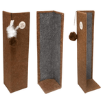 - Revestimento em forração que simula carpete: Proporciona o desgaste saudável das unhas e oferece um local aconchegante para o bichano se espreguiçar;