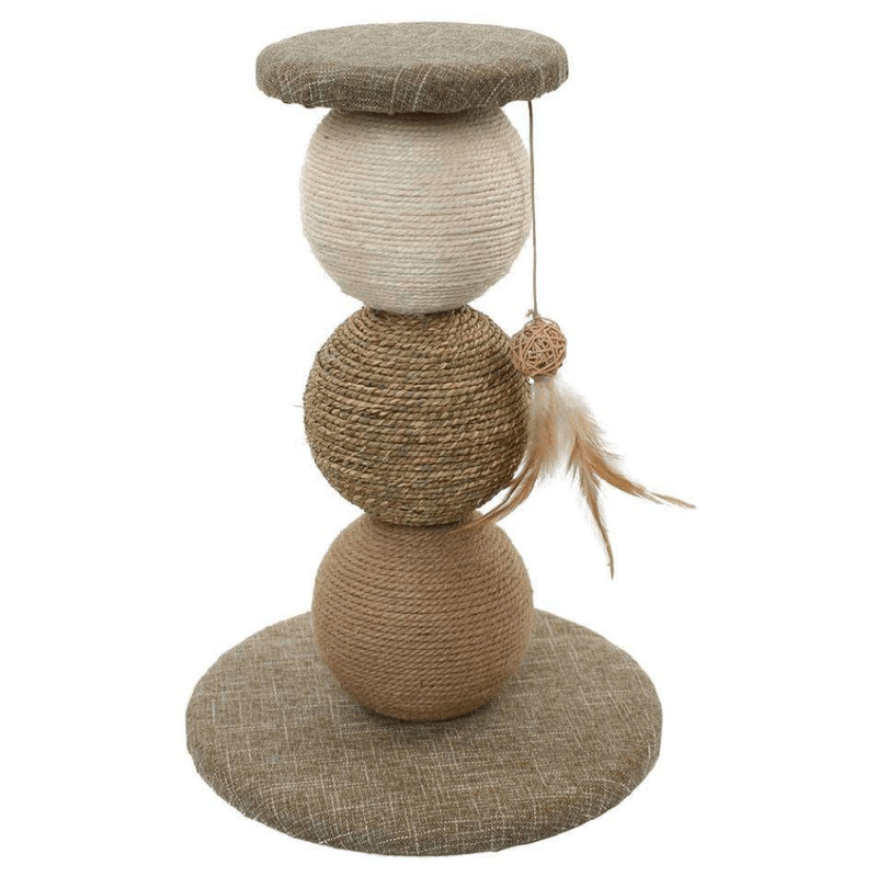 O Brinquedo Arranhador Jambo Poste Bola Tripla é a solução ideal para manter seu gato ativo, saudável e longe dos móveis da casa. Feito para todas as fases da vida felina, o produto combina diversão e cuidado em um só item. Suas três esferas revestidas com sisal oferecem uma superfície resistente para arranhões, ajudando a desgastar as unhas do gato de maneira natural e saudável. Inclui ainda um brinquedo pendurado com penas para estimular o instinto de caça do seu pet. Um produto que une funcionalidade, entretenimento e cuidado com os gatos.