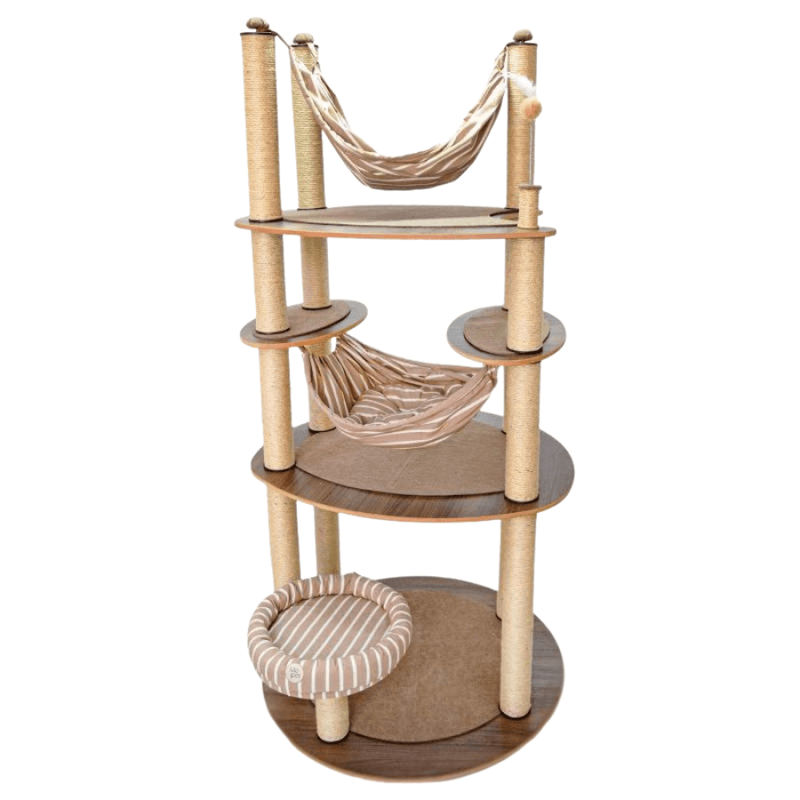 - Postes de sisal em abundância: Atendem ao instinto natural dos felinos, ajudando na manutenção correta das unhas;