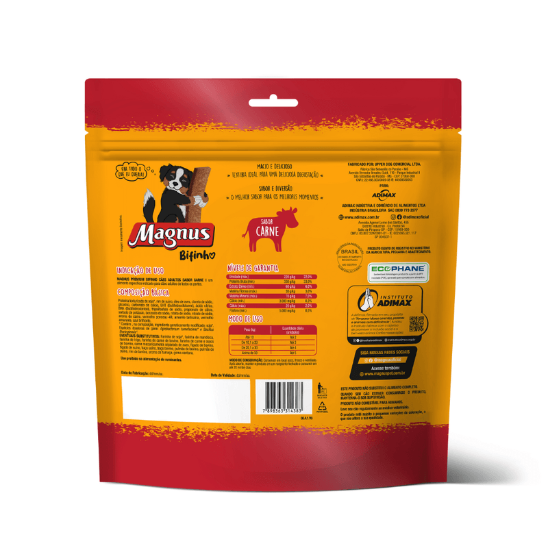A linha Magnus Bifinho Mastigável Sabor Carne é indicado para cães adultos de todos os portes. Aproveite os momentos de diversão e alegria com o seu melhor amigo. Ofereça diariamente como agrado, recompensas e treinamento.