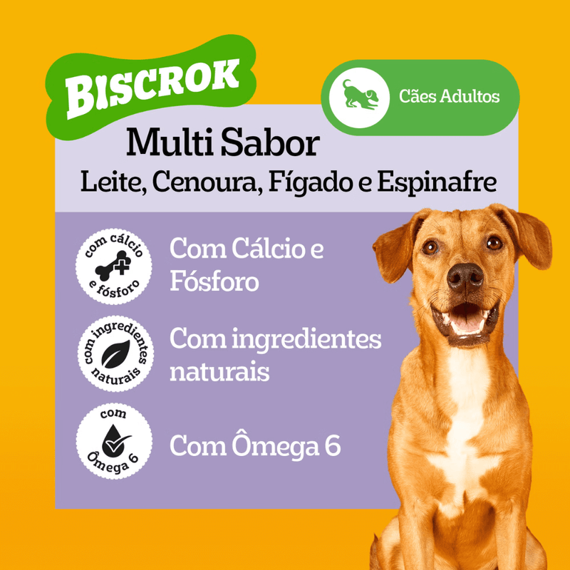 PEDIGREE® acredita que os cães alimentam o que há de melhor em nós e queremos alimentar o que há de melhor neles, traduzindo qualidade em petiscos que eles vão adorar. Os cães precisam de amor e petiscos ajudam a dizer a eles o quanto são amados por seus donos e que são parte da família. Os petiscos podem ser usados para treinar e recompensar, são perfeitos para momentos de conexão, além de poderem ajudar a manter a saúde oral do seu cão. É por isso que BISCROK™ oferece biscoitos crocantes em formato de ossos, enriquecidos com cálcio e ômega 6. Ideais para treinar, recompensar e mimar seu cão a qualquer hora do dia. Fortaleça o relacionamento entre você e seu cão dando-lhe o que há de melhor! Com Omega 6 e Calcio. Composição Básica Composição básica do produto: Farinha de trigo, quirera de arroz, farinha de vísceras com ossos, canjica de milho*,gordura de ave, glúten de trigo, leite integral em pó, açúcar, cenoura desidratada, espinafre desidratado, metabissulfito de sódio, sorbato de potássio, hidrolisado de fígado de ave esuíno, BHT e corantes (amarelo tartrazina, amarelo crepúsculo, azul indigotina, vermelho ponceau 4R).* Espécies doadoras do gene: Agrobacterium tumefaciens, Bacillus thuringiensis, Streptomyces viridochromogenes, Zea mays, Sphingobium herbicidorovans, Dicossoma sp., Diabrotica firgifera, Thermoccocales spp, Bacillus substilis. Cloreto de sódio - sal comum -, fosfato bicálcico.