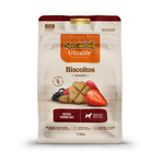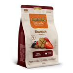 Farinha de batata doce, farinha de trigo, frutas vermelhas (amora, framboesa, morango e jabuticaba – 2,5%), aveia, ovo em pó, farinha de torresmo, farinha de vísceras de aves, concentrado proteico de soro de leite (whey protein), óleo de aves, parede celular de levedura (prebiótico - mananoligossacarídeos e beta-glucanas - 0,2%), bicarbonato de sódio, subproduto da extração da L-cistina, sulfato de condroitina (0,03%), sulfato de glicosamina (0,05%), hexametafosfato de sódio (0,05%), cloreto de sódio, sorbato de potássio, propionato de amônio, antioxidantes naturais (concentrado de tocoferóis, extrato de alecrim, extrato de chá verde e extrato de hortelã).