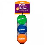 As letras JAMBO da bola são fluorescentes e brilham no escuro, estimulando a brincadeira, deixando-a ainda mais divertida e ajudando a desestressar seu cãozinho.