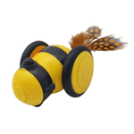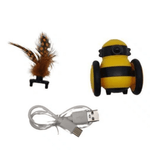 É um robô abelhinha recarregável, para divertir seu Pet. Vem com pena para acoplar no rabinho e cabo para carregamento.