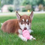 - O brinquedo para cães Puppy KONG é adaptado para os dentes de leite de um filhote em crescimento;