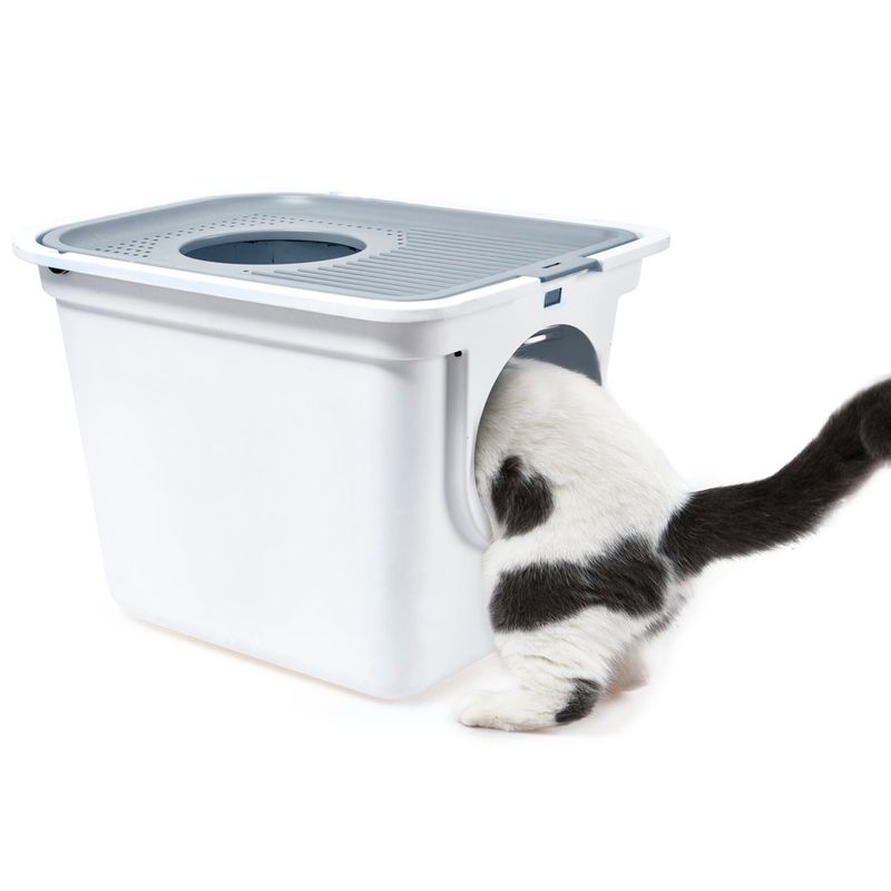 O Banheiro Toilet Plus Chalesco é ideal para o tutor que queira uma casa mais limpa, sem areia espalhada. Com sua tampa perfurada, permite que qualquer areia agarrada às patas do gato, volte a cair no interior da caixa. Uma vez que a porta frontal é avançada para entrar na caixa, os gatos terão de sair por cima, fazendo com que os grãos de areia que levam nas patinhas voltem a cair no interior da caixa.