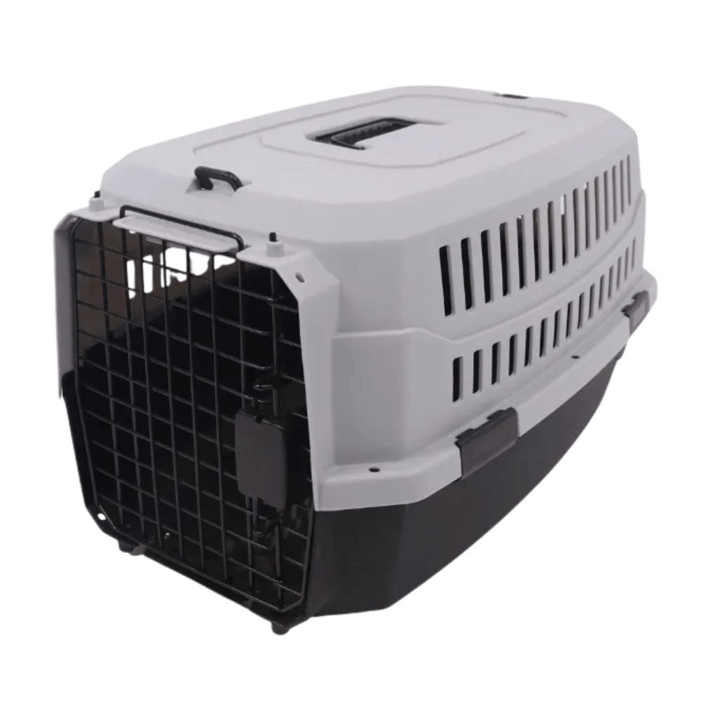 Suporta pets até 11 kg. Sua portinha é em metal e tem fecho com dupla trava, resistindo às possíveis investidas do animal, ao contrário das portas de plástico, que têm menor resistência.