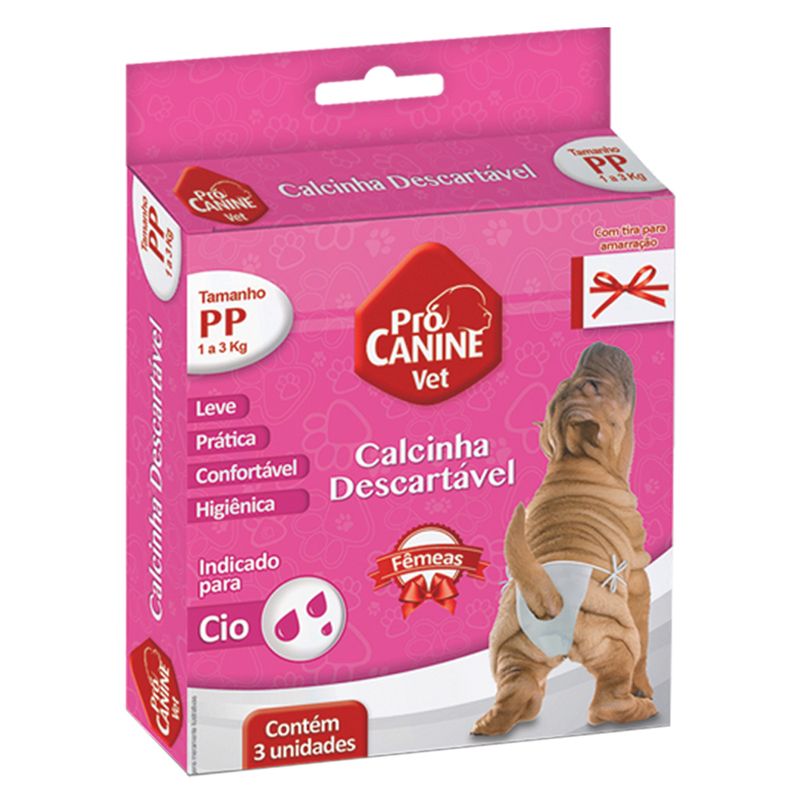 Calcinha tamanho PP indicado para cadelas de 1 à 3kg.