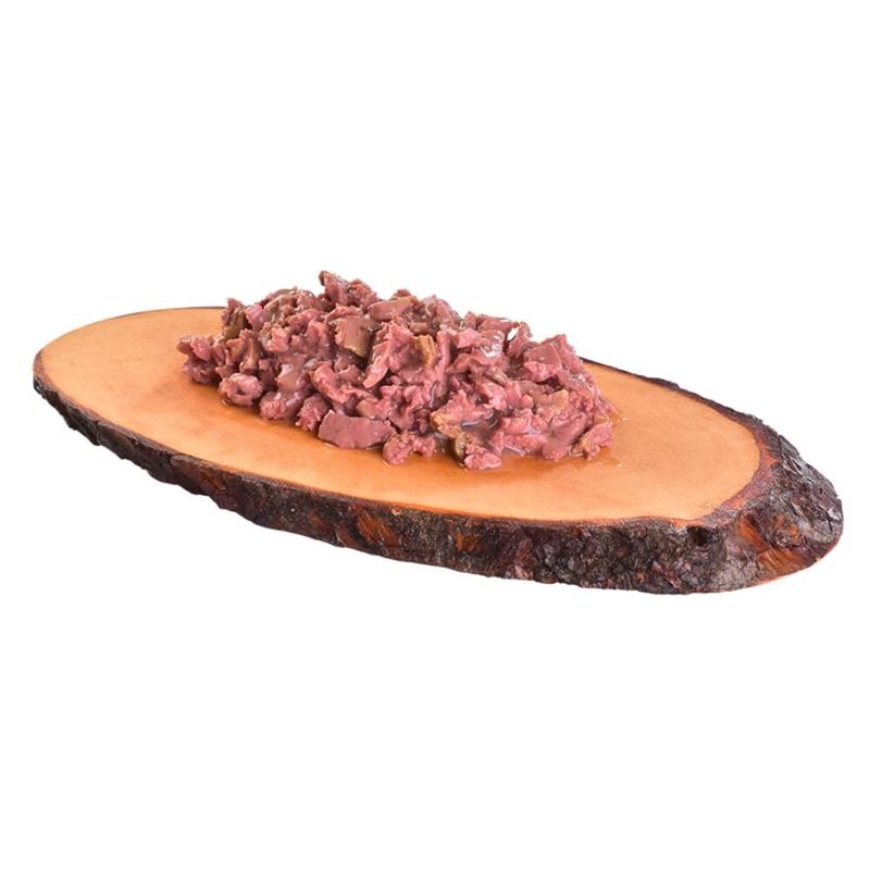 85% de carne em filés (71% de frango, 14% de javali), 12% de caldo, 1% de camomila, 1% de óleo de linhaça, 0,5% de minerais, 0,5% de amido vegetal.