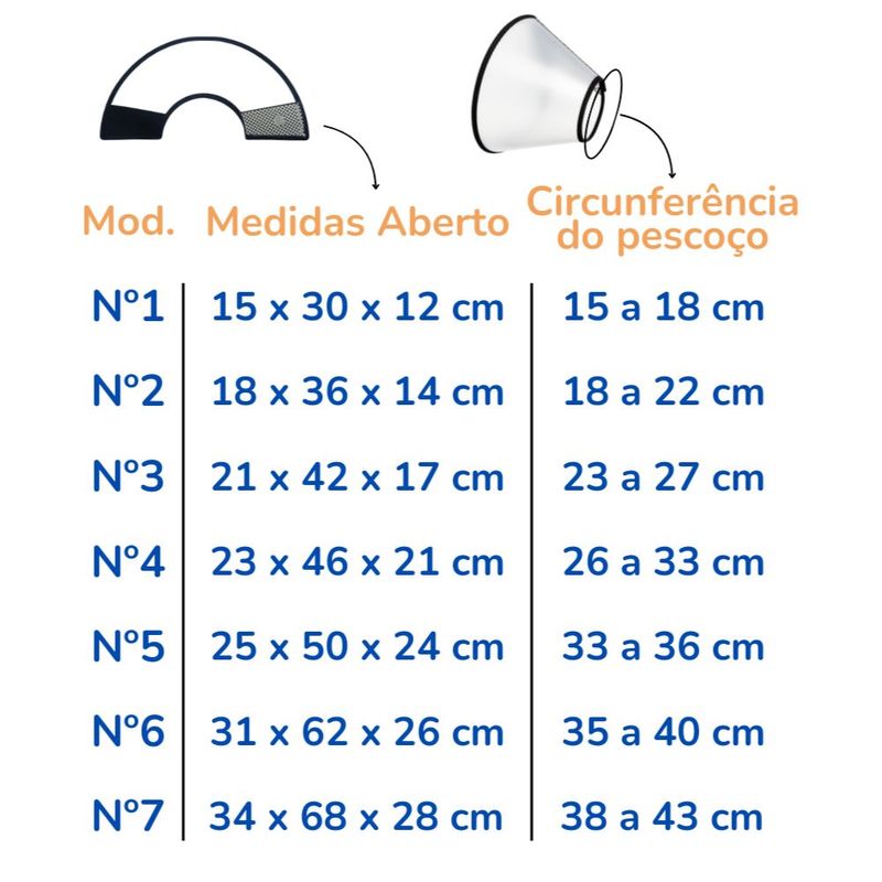 Circunferência do pescoço: 18 a 22cm