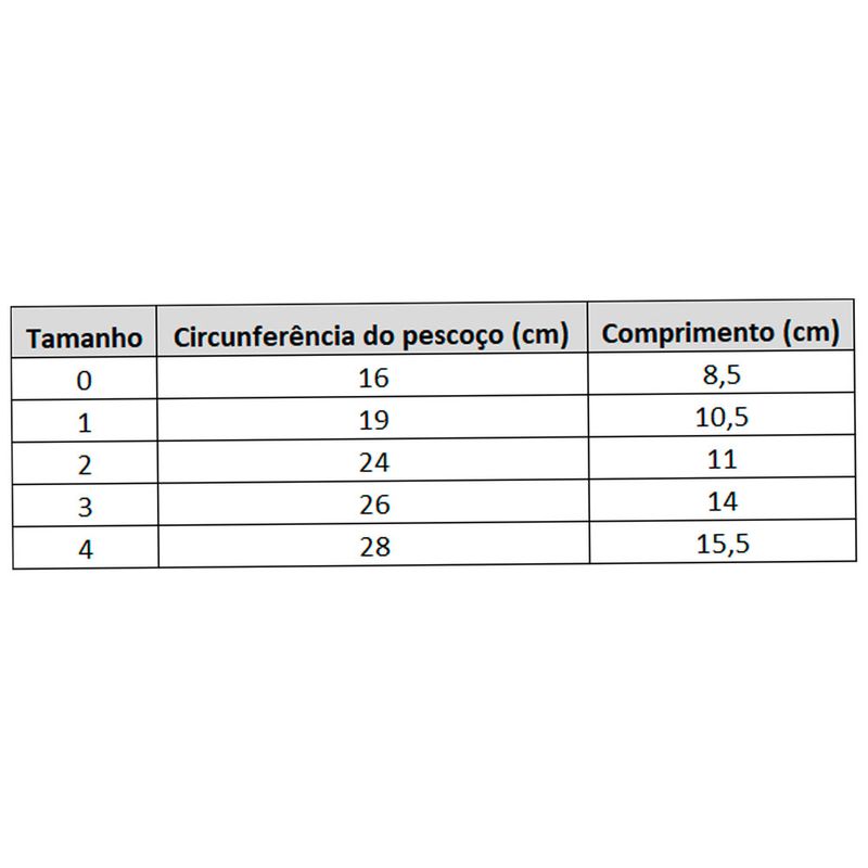 * Consulte nossa tabela referencial e veja o tamanho que mais se adapta ao seu animal.