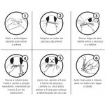 Ajuste a coleira ao pescoço do cão com uma folga de dois dedos. Recomenda-se a retirada durante o banho e recolocação após a secagem completa da pele.