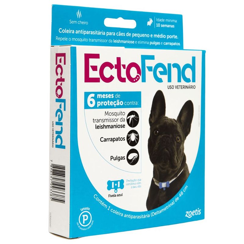 Mantenha seu pet protegido com a Coleira EctoFend P, desenvolvida para cães de pequeno e médio porte a partir de 10 semanas de idade.. Com ação prolongada e eficaz, ela protege seu companheiro de pulgas, carrapatos e do perigoso mosquito-palha (Lutzomyia longipalpis), transmissor da leishmaniose visceral canina.