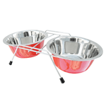 - Dois em um: O suporte em aramado com acabamento em cromo acomoda as duas tigelas de inox ao mesmo tempo, mantendo a água e a ração sempre à mão e no lugar certo.