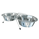 Esta dupla de comedouros é ideal para garantir refeições mais organizadas e confortáveis para o seu pet. - Dois em um: O suporte em aramado com acabamento em cromo acomoda as duas tigelas de inox ao mesmo tempo, mantendo a água e a ração sempre à mão e no lugar certo. - Higiene e durabilidade: As tigelas são de aço inoxidável, um material higiênico, durável e fácil de limpar. O exterior das tigelas pintados dá um toque de charme e alegria ao ambiente. - Estabilidade: Os pés com ponteiras em plástico garantem a estabilidade do conjunto, evitando que as tigelas se movam ou causem ruídos durante as refeições. - Fácil de limpar: As tigelas podem ser removidas do suporte para facilitar a limpeza e higienização.