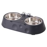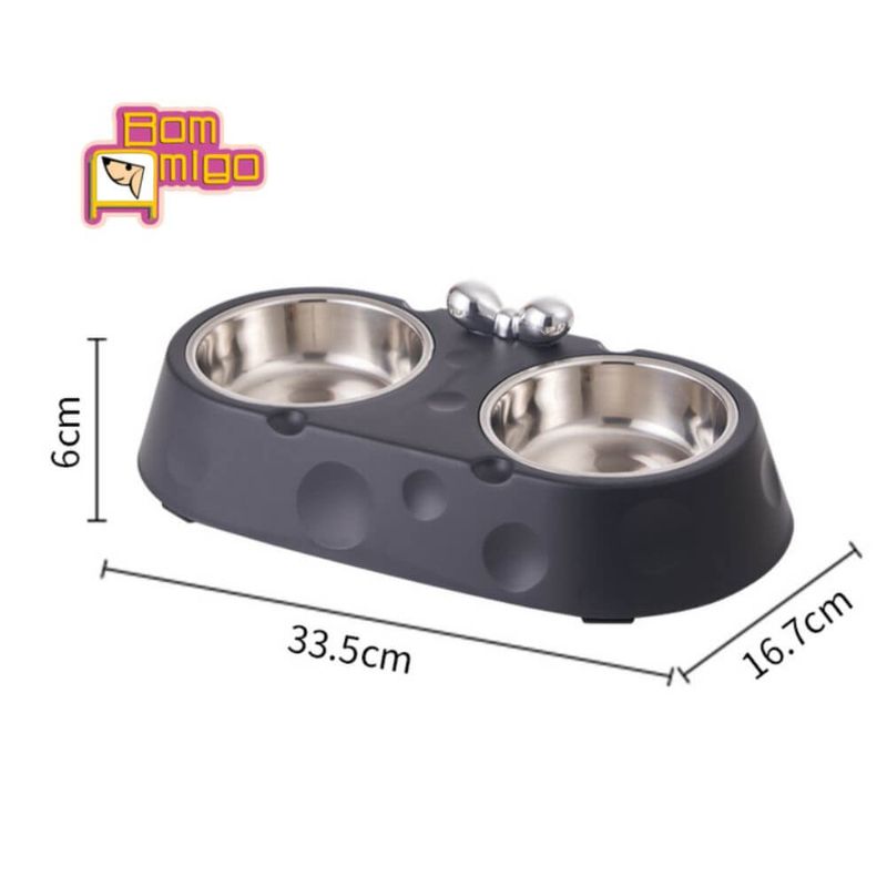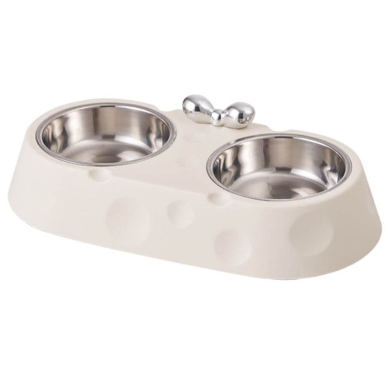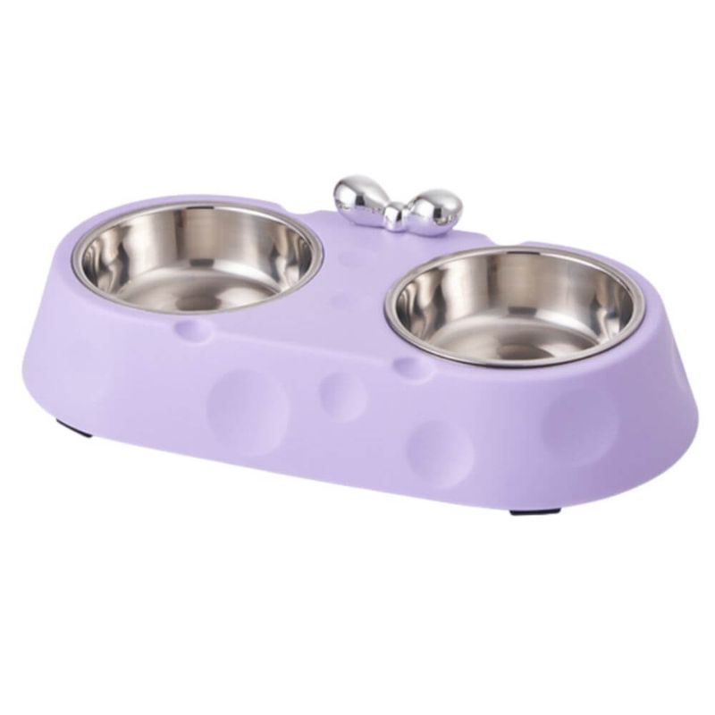 COMEDOURO DUPLO TELUR é um comedouro com uma decoração de lacinho e textura que lembra um queijo suiço com seus "buraquinhos".