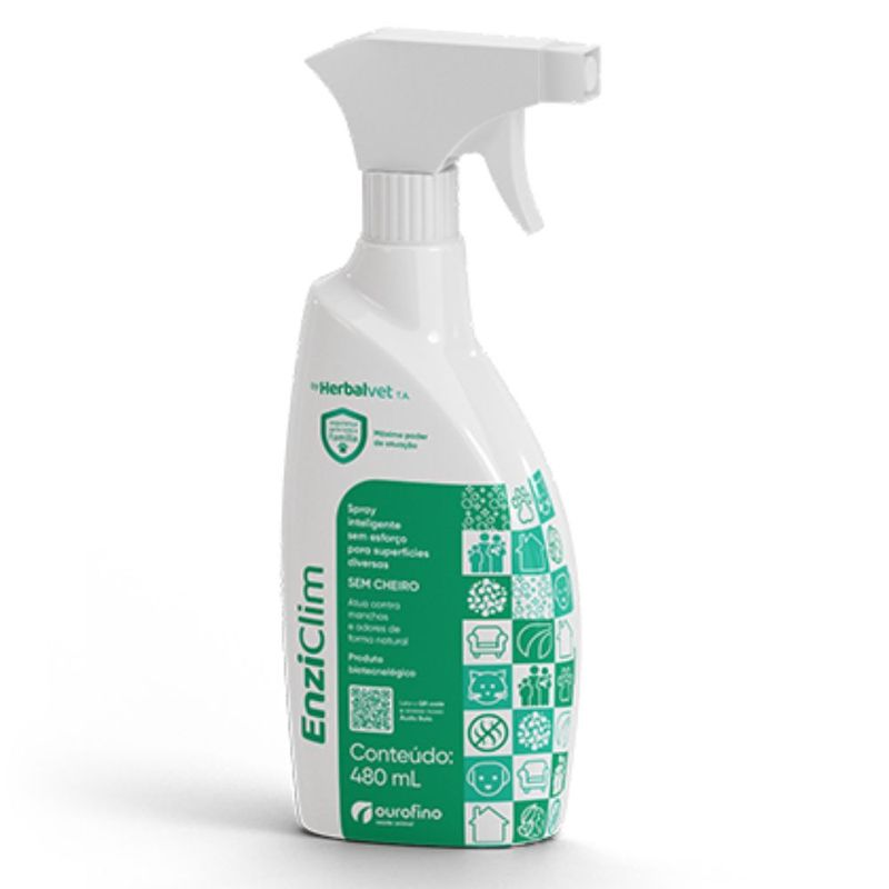 EnziClim é uma solução com microrganismos vivos que atua de forma natural contra odores e manchas causados por resíduos orgânicos de pets como urina, fezes, vômito e outros em superfícies diversas. Spray inteligente sem esforço e sem cheiro. Produto biotecnológico. Indicado: Para cães e gatos de todos os portes. Modo de usar: Antes de aplicar o produto, teste em uma pequena parte da superfície. 1 - Remova o excesso de resíduos orgânicos sólidos ou líquidos com um pano; 2 - Agite bem o frasco do produto; 3 - Borrife o produto no local até cobrir toda a área afetada; 4 - Deixe secar naturalmente; 5 - Repita a aplicação, se necessário. Composição Microrganismos vivos, Conservante (Álcool etílico), Solvente (Água).