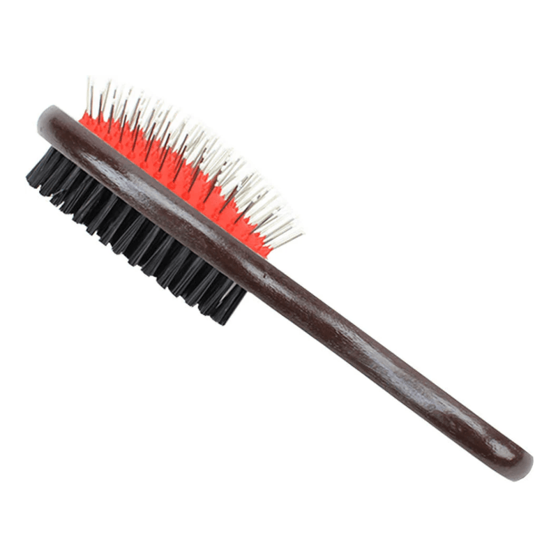 - Indicada para cães; - Possui duas faces: uma com cerdas de aço inoxidável e outra de pelo; - Excelente para mante os pelos do seu pet sedosos e desembaraçados, - Tira toda pelagem morta e estimula o crescimento de fios novos; - Contém 1 unidade.