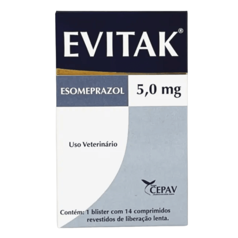 EVITAK® é um produto a base de Esomeprazol, apresentado em comprimidos revestidos de liberação lenta. O Esomeprazol é o mais potente e mais eficiente dos Inibidores da Bomba de Prótons, com uma absorção mais rápida e um efeito mais duradouro, além de ser mais estável em ambientes ácidos.