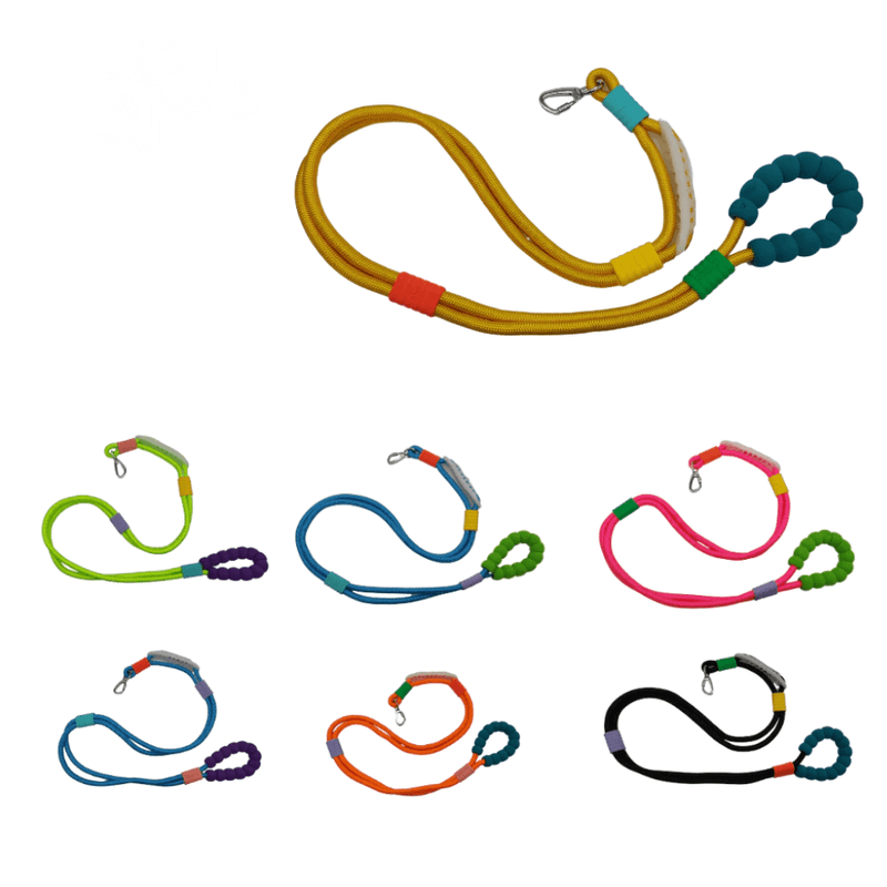 Possui mosquetão com trava de segurança, além de duas "alças" para o tutor segurar, auxiliando no controle de animais que "puxam" muito na hora do passeio, possui uma pega confortável e uma "alça" plastica perto do mosquetão, para que o Tutor possa manter o Pet mais perto dele se for necessário, mantendo a segurança e conforto de ambos.