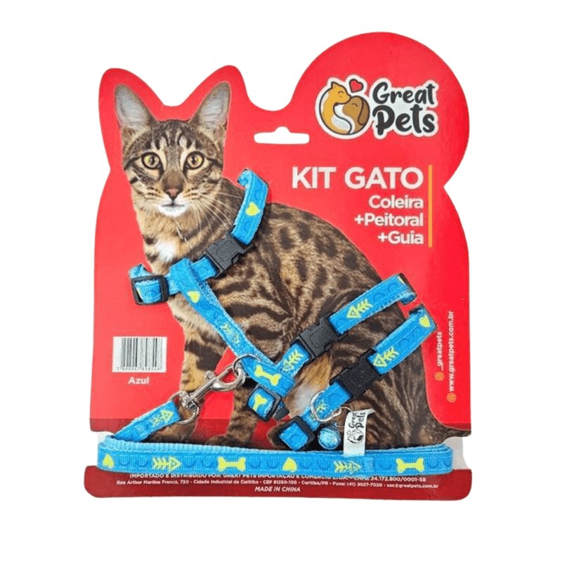 O Kit Peitoral + Coleira + Guia para Gatos da Great Pets é a solução completa para os passeios do seu felino.