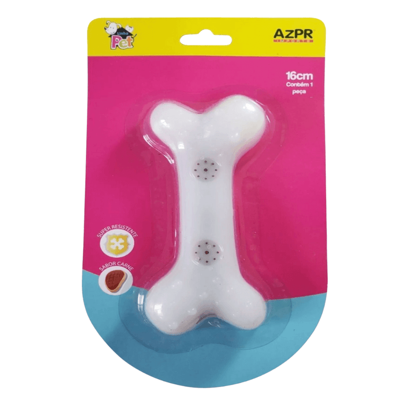 - Superfície perfurada que permite a passagem do sabor e aroma; - Essência interna exclusiva e agradável; - Contribui para a higiene bucal; - Fortalece a mordida; - Formato de osso; - Atóxico; - Medida aproximada: 16 cm.