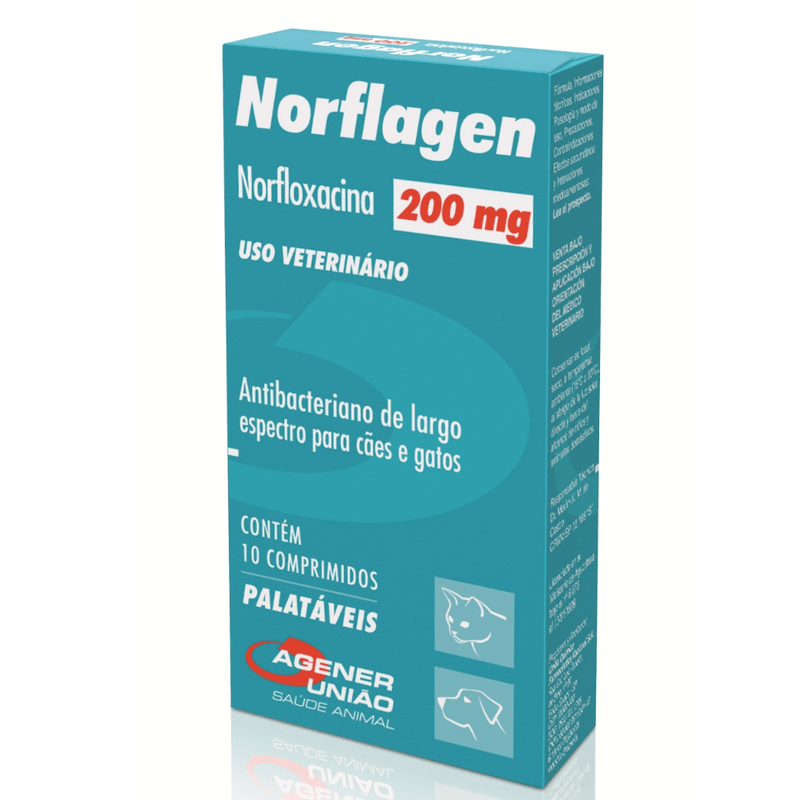 Cada comprimido Contém Norfloxacina 200mg, Palatabilizante 25mg, Excipiente q.s.p 500mg.