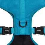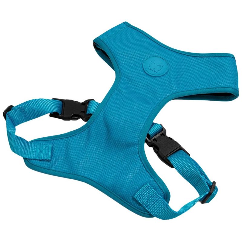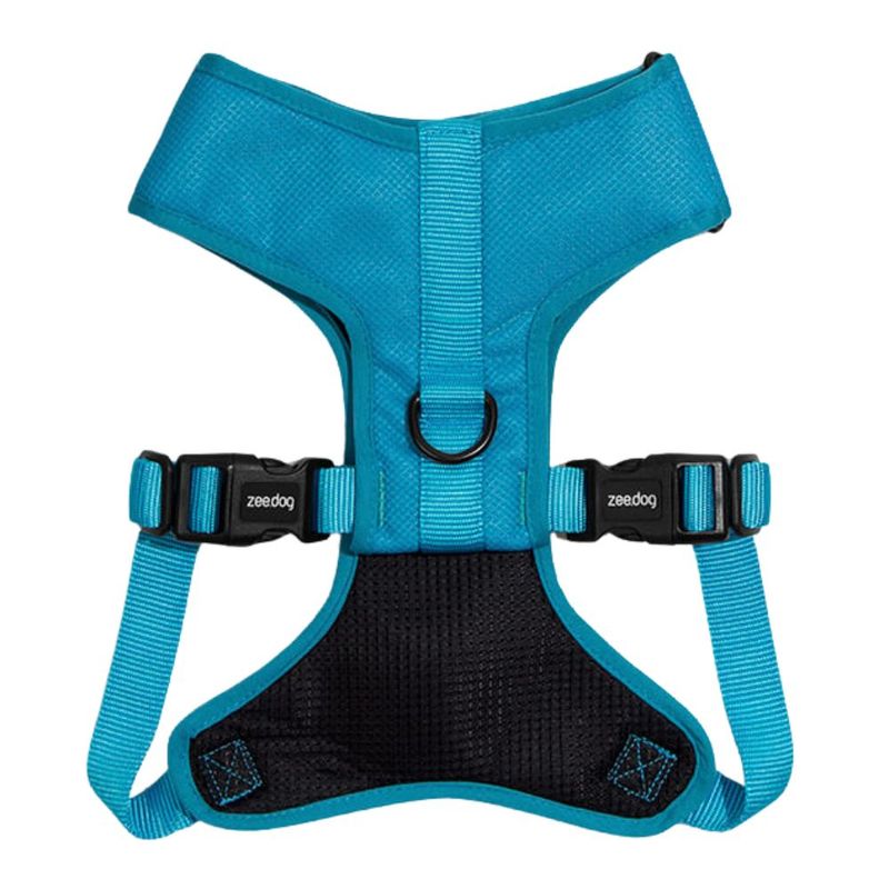 O peitoral Air Mesh Ajustável Ultimate Blue para cachorros não esquenta pois possui trama aerada que permite a passagem de ar, refrescando a pele e o pelo do cachorro. É regulável tanto na barriga quanto no pescoço e possui anel para prender a guia na parte das costas. É recomendado evitar contato com superfícies ásperas ou cortantes.