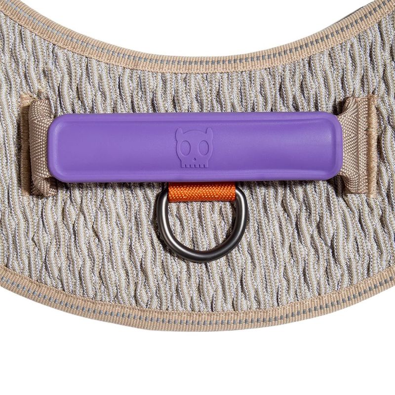 - A tira de ajuste é feita com o mesmo material de cinto de segurança: para um ajuste mais suave ao corpo do cachorro;
