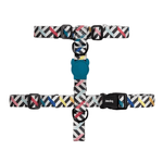 O peitoral H para cachorros Fritz da Zee.Dog é feito de poliéster resistente, o mesmo usado em cintos de segurança. Possui grande capacidade de ajuste tanto no pescoço quanto na cintura, sendo de fácil adaptação e possui duas posições para prender a guia. Assim como os cintos de segurança, é recomendado evitar contato com superfícies ásperas ou cortantes como mordidas, por exemplo.