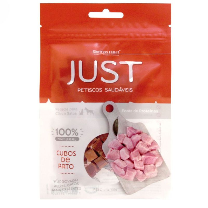 O Petisco Just Cubos de Pato para Gatos é um alimento indicado para gatos de todas as raças e idades. Ele é saudável, livre de corantes artificiais, sem transgênicos, livre conservantes artificiais, sem ácido cítrico e livre de propilenoglicol, 100% natural. Além de ser fonte de proteínas, uma opção saudável de petisco para seu amiguinho.