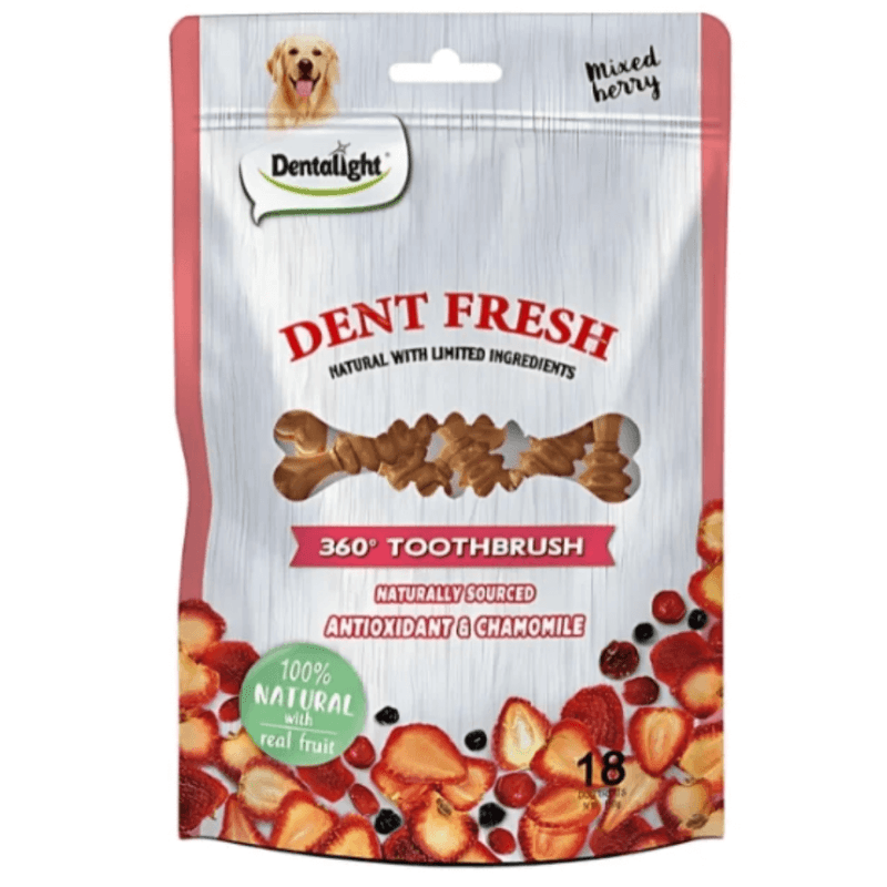 Fécula de batata, farinha de ervilha, lignocelulose, glicerina, bagaço de maçã, gelatina, frutas vermelhas(mirtilo, arando, amora e morango), salsa desidratada, camomila, lecitina de soja.