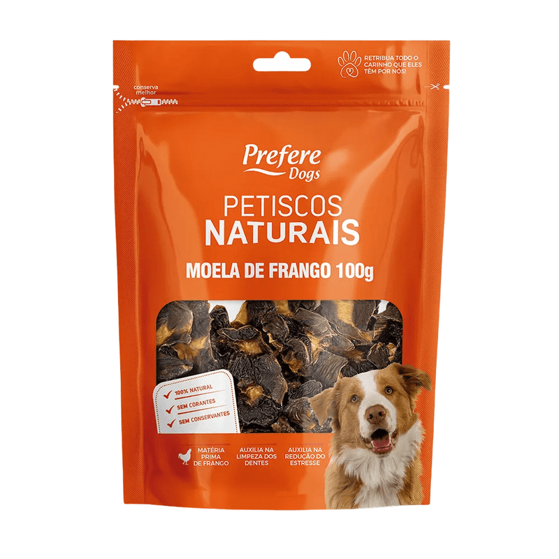 A Moela de Frango Desidratada Prefere Dogs é um petisco 100% natural para cães, feita com um único ingrediente: Moela de frango. Sem conservantes, corantes, aromatizantes ou aditivos químicos, é uma opção saudável, nutritiva e segura para o seu melhor amigo. Após aberto, consumir em até 15 dias.