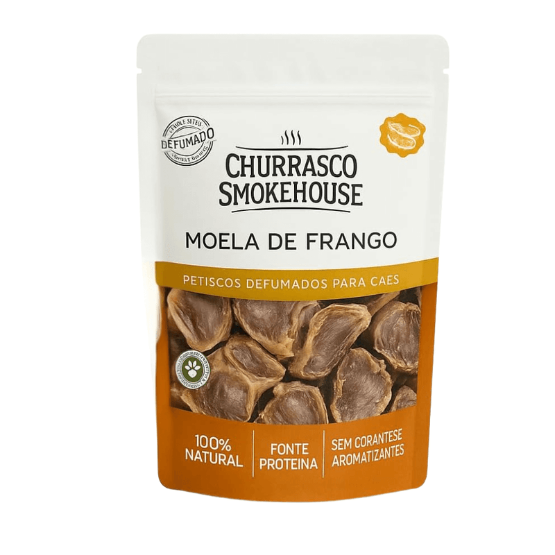 CãesPetiscosAlimentosPetiscosPetiscos NaturaisPetisco Snacks Churrasco Smokehouse Moela de Frango para Cães 80g