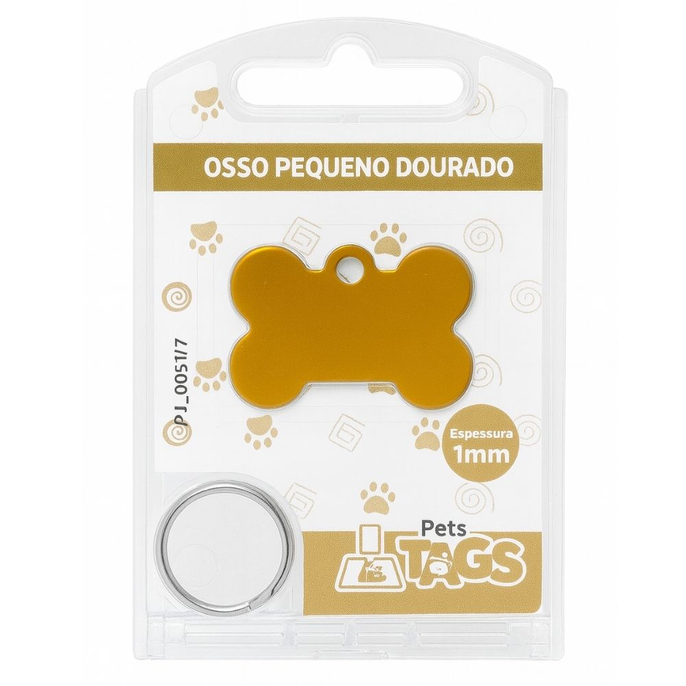 Plaquinha de Identificação Personalizada - Osso Dourado P