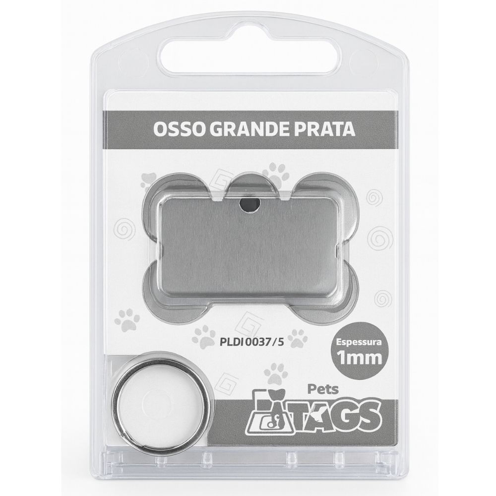 Plaquinha de Identificação Personalizada - Osso Prata G