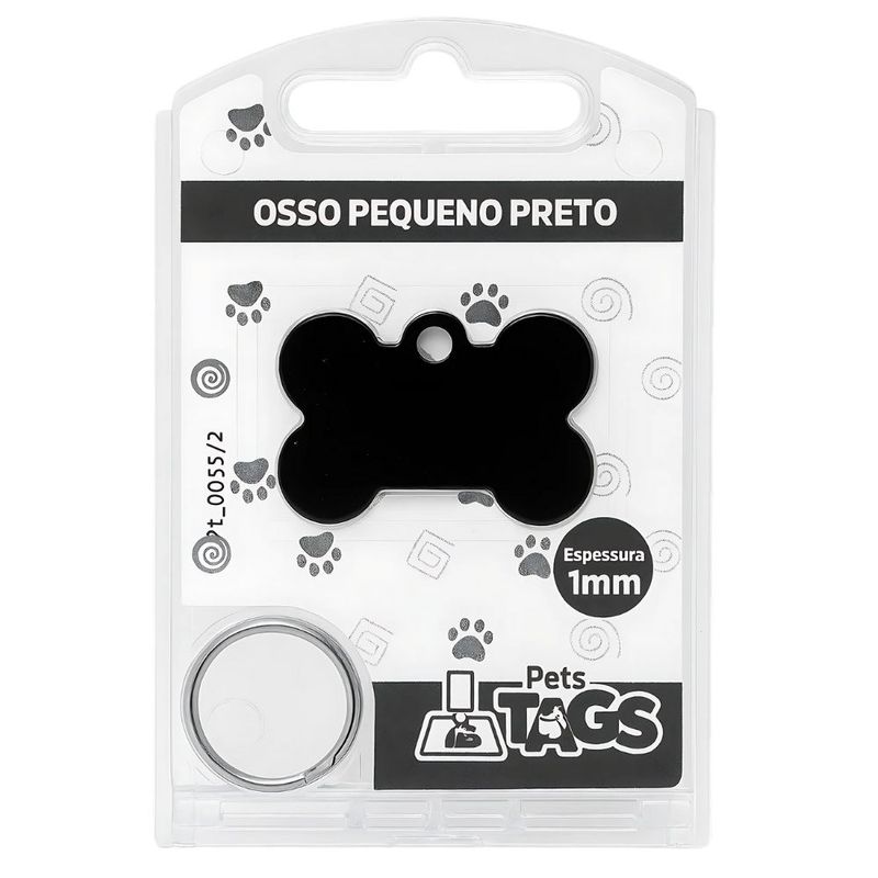 Plaquinha de Identificação Personalizada - Osso Preto P