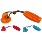 Com ventosa que gruda no piso ou azulejo, seu cão vai poder brincar e desestressar, além de receber umas recompensas, pois tem abertura para colocar petisco.