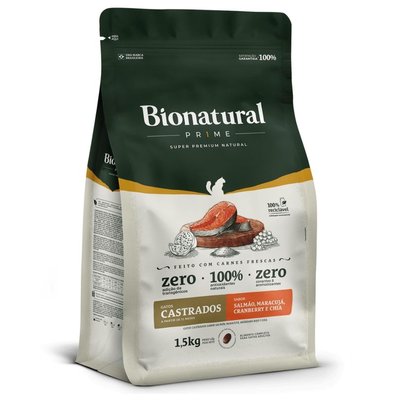 Ração Bionatural Prime Para Gatos Castrados Salmão 1,5 kg