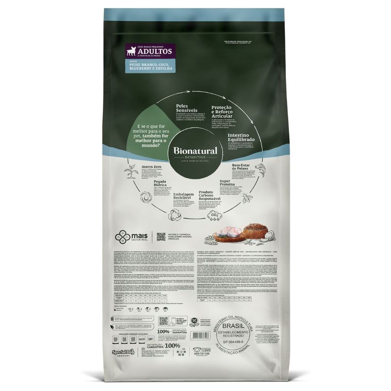 Ração Bionatural Sensitive para Cães Adultos de Raças Pequenas Sabor Peixe Branco 10,1 kg