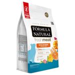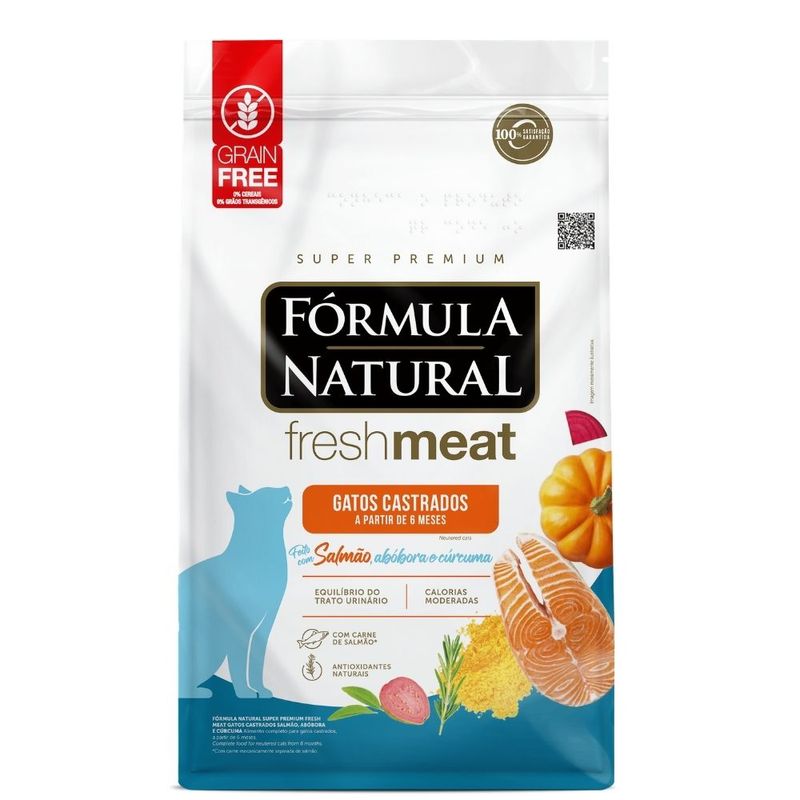 Carnes e miúdos selecionados (carne mecanicamente separada de salmão (10%), carne mecanicamente separada de frango e fígado de frango), farinha de torresmo, farinha de vísceras de aves, óleo de aves, óleo refinado de peixe, farinha de mandioca, fécula de mandioca, farinha de ervilha, cúrcuma (0,01%), fécula de batata, fibra de cana-de-açúcar, farelo de goiaba, frutas e vegetais desidratados (abóbora (0,5%), manga, maçã, cenoura), polpa de beterraba, farinha de linhaça, cloreto de sódio, cloreto de potássio, hidrolisado de fígado de aves e suíno, biomassa de microalgas (Schizochytrium sp.), parede celular de levedura, inulina, frutooligossacarídeos, extrato de yucca (0,04%), zeolita, vitaminas (A, D3, E, K3, B1, B2, B5, B6, B12, C, niacina, ácido fólico, biotina, cloreto de colina), minerais (sulfato de ferro, sulfato de cobre, sulfato de manganês, sulfato de zinco, iodato de cálcio, selenito de sódio, organozinco, organosselênio, organomanganês), lisina, metionina, taurina, L-carnitina, ácido propiônico, ácido fosfórico, ácido cítrico, cloreto de amônio, sulfato de amônio, extratos de alecrim, chá verde e hortelã, concentrado de tocoferóis (0,01%).