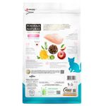 Carnes e miúdos de frango selecionados (16%) (carne de frango com ossos, carne mecanicamente separada de frango e fígado de frango), farinha de torresmo, farinha de vísceras de aves, óleo de aves, óleo refinado de peixe, farinha de mandioca, fécula de mandioca, farinha de ervilha, cúrcuma (0,01%), fécula de batata, fibra de cana-de-açúcar, frutas e vegetais desidratados (manga, maçã (0,5%), cenoura), polpa de beterraba, farinha de linhaça, cloreto de sódio, cloreto de potássio, hidrolisado de fígado de aves e suíno, biomassa de microalgas (Schizochytrium sp.), parede celular de levedura, inulina, frutooligossacarídeos, extrato de yucca (0,04%), zeolita, vitaminas (A, D3, E, K3, B1, B2, B5, B6, B12, C, niacina, ácido fólico, biotina, cloreto de colina), minerais (sulfato de ferro, sulfato de cobre, sulfato de manganês, sulfato de zinco, iodato de cálcio, selenito de sódio, organozinco, organosselênio, organomanganês), lisina, metionina, taurina, ácido propiônico, ácido fosfórico, ácido cítrico, cloreto de amônio, sulfato de amônio, extratos de alecrim, chá verde e hortelã, concentrado de tocoferóis (0,01%).