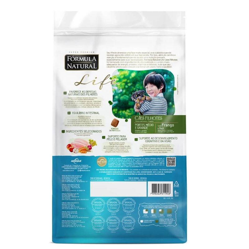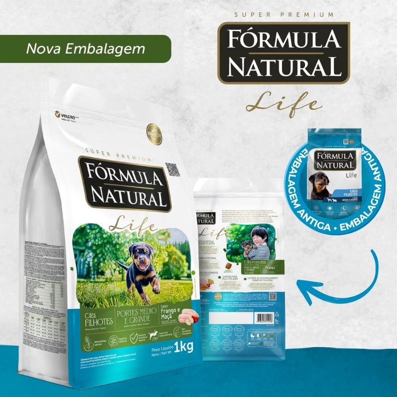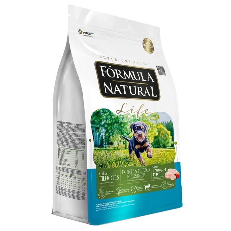 Fórmula Natural Super Premium Cães Filhotes Portes Médio e Grande oferece todos os cuidados para um ótimo desenvolvimento dos cães filhotes de porte médio e grande, do desmame até 18 meses de idade.