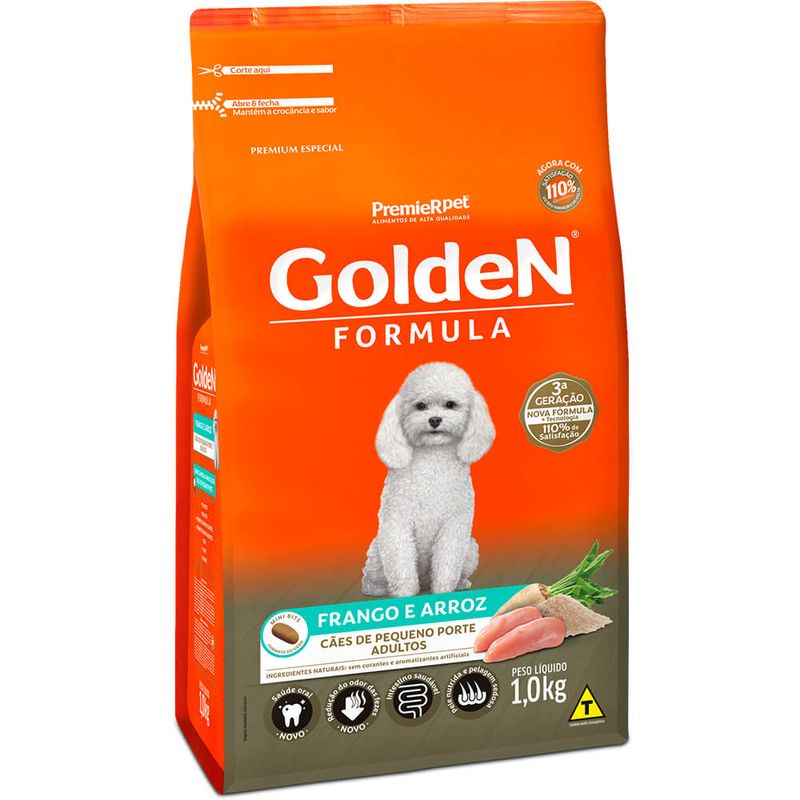 Golden Formula é um alimento do tipo Premium Especial que oferece a seu animal pele e pelagem mais bonitas e brilhantes, intestino mais saudável e consequentemente, fezes mais fáceis de limpar, além de não conter corantes nem aromatizantes artificiais, conferindo assim mais saúde e longevidade.