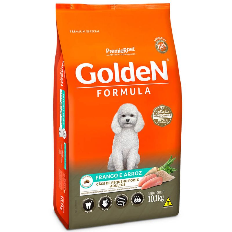 Ração Golden Fórmula Mini Bits Para Cães Adultos de Porte Pequeno Sabor Frango e Arroz 10,1 kg